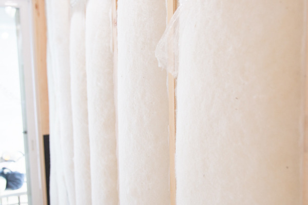 お部屋を見渡すと、羊毛断熱材サーモウールが柱と柱の間にビッシリと詰め込まれています![]()