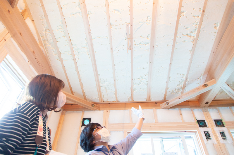 床下にも施工していて、床下は10センチ、屋根は20センチほどの厚みを吹き付けています。