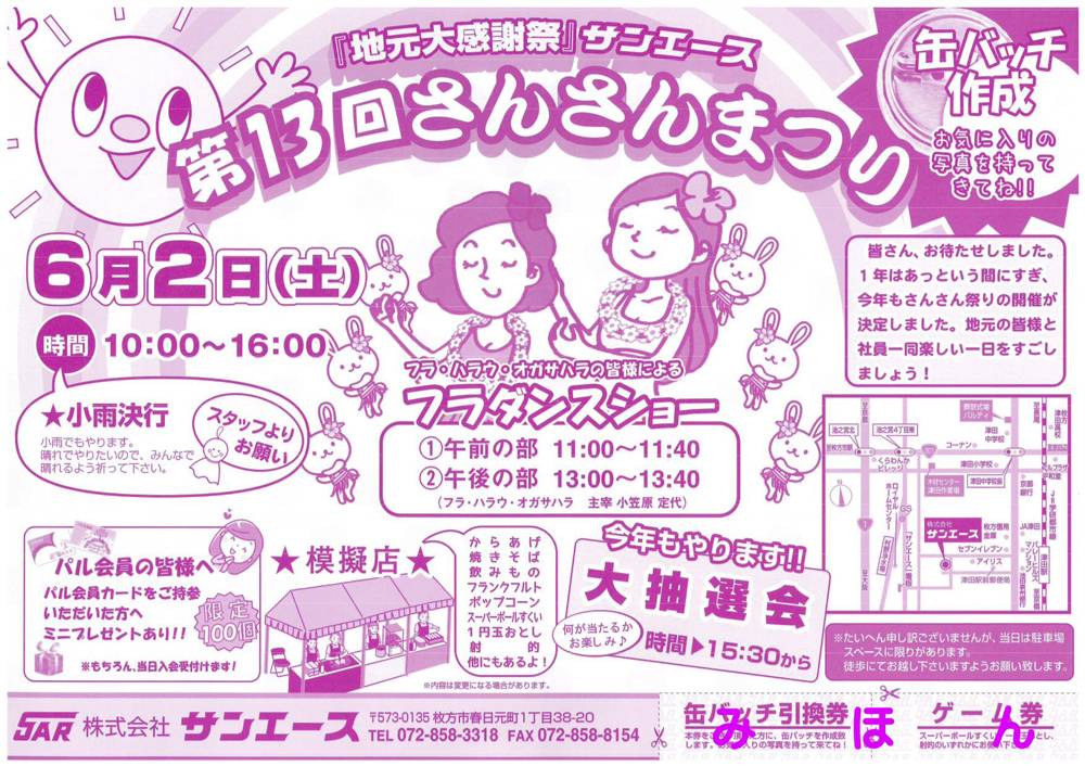 6月2日(土)は「さんさんまつり」で枚方の夏を先取り!1回50円〜の模擬店&ステージ、大抽選会も【ひらつー広告】