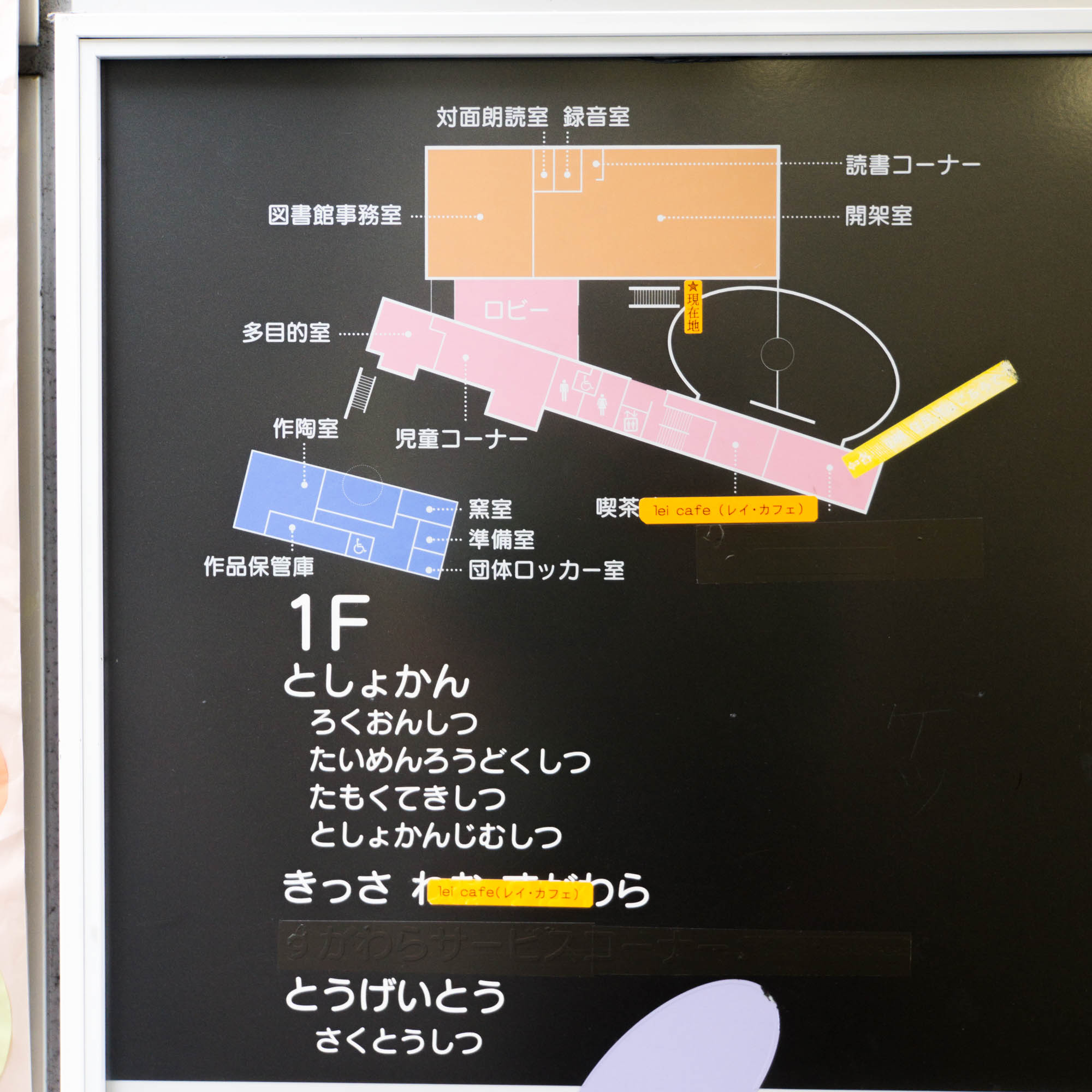 1階から写真で詳しく見ていきましょう!まずは館内地図。↓
