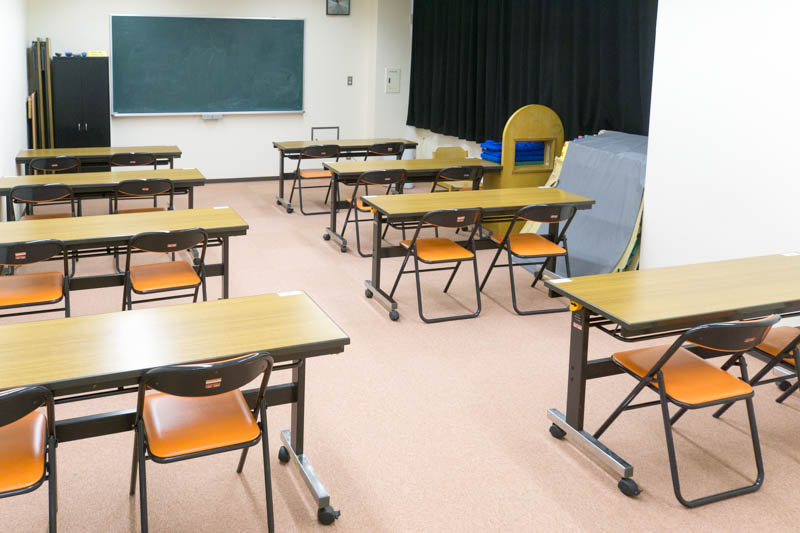 こちらは名前の響きが懐かしい視聴覚室。ここにも舞台幕があったりして、発表会やその練習など活用は無限大!(いいすぎ)