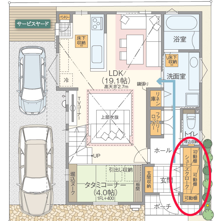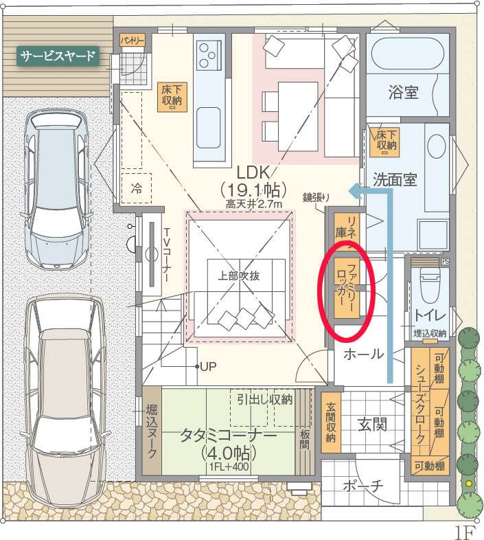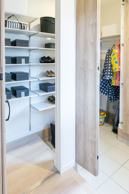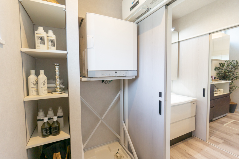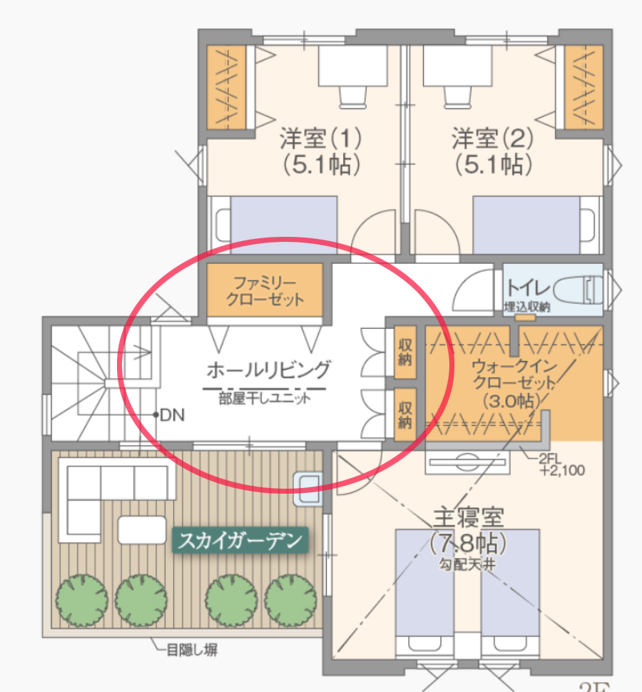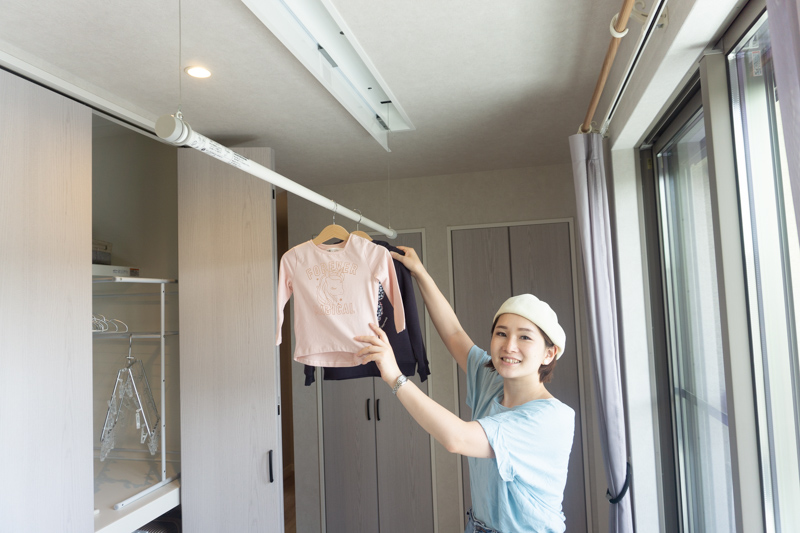 「しかもここ、2階に部屋干しユニットがあるホールリビングとファミリークローゼットがあるから、洗濯物を干してそのままクローゼットに収納することができるんよ」