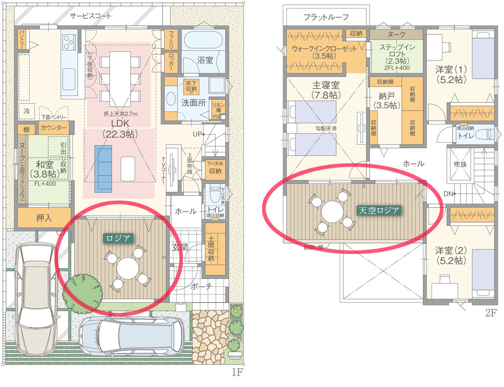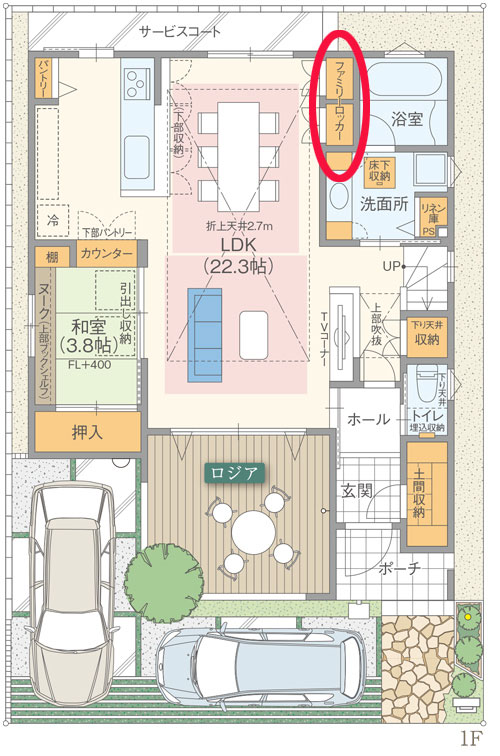 「このロジア、最初に見てたファミリーロッカーがあるモデルハウスの1階LDK横にあるねんけど…」