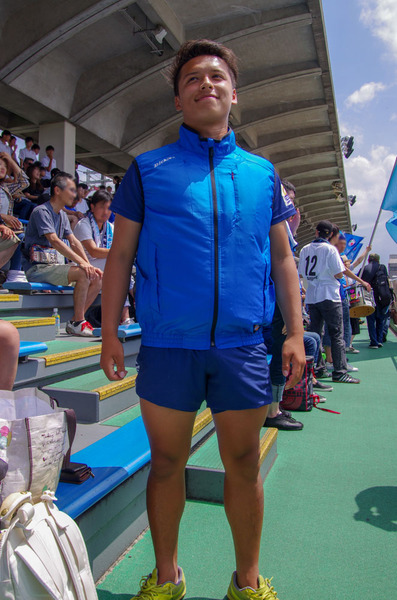 (偶然サポーター席にいた、FCティアモの福森選手にも試着していただきました!)