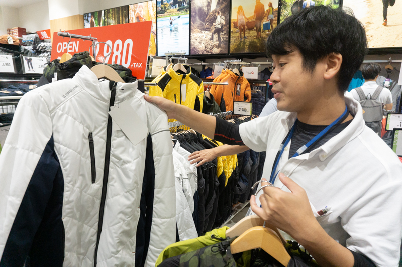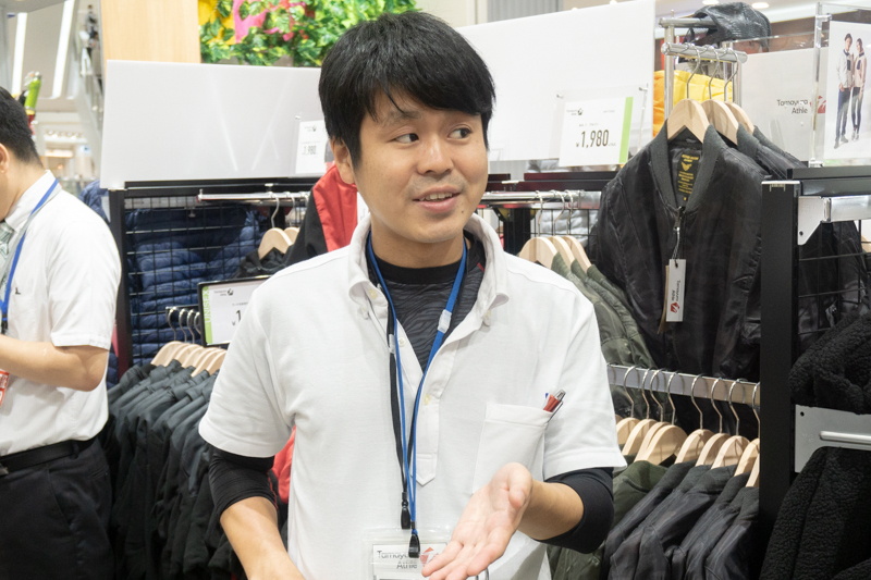「お店の入り口にあったジャンプしているポーズなど、お客さまが着用するシーンをイメージしやすいように工夫していますよ!」
