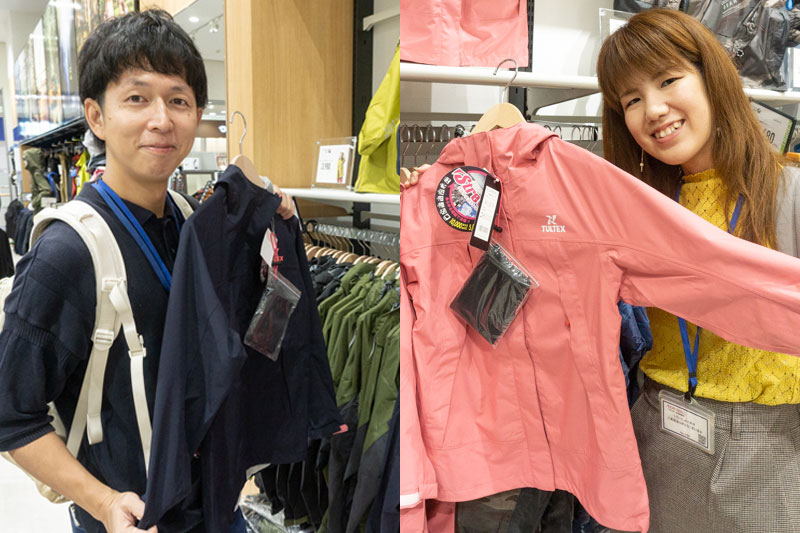 「このジャケットなんて、防花粉・防風・撥水・UV対策・透湿の機能がついてますよ!」