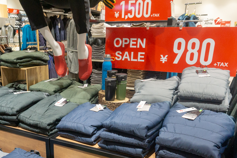お店の入り口付近には、OPEN価格で並んでいるオススメのアウターがずらり。