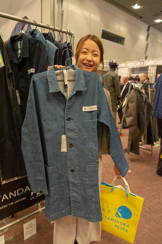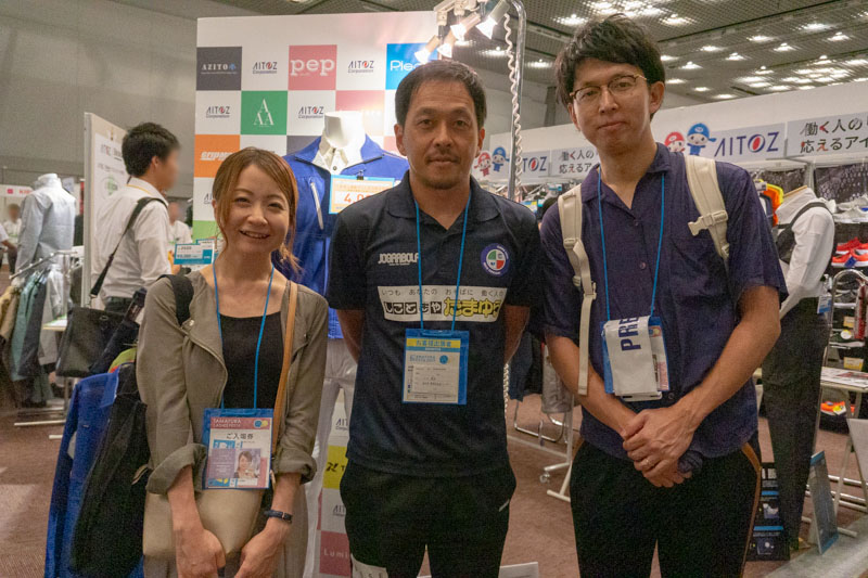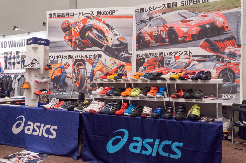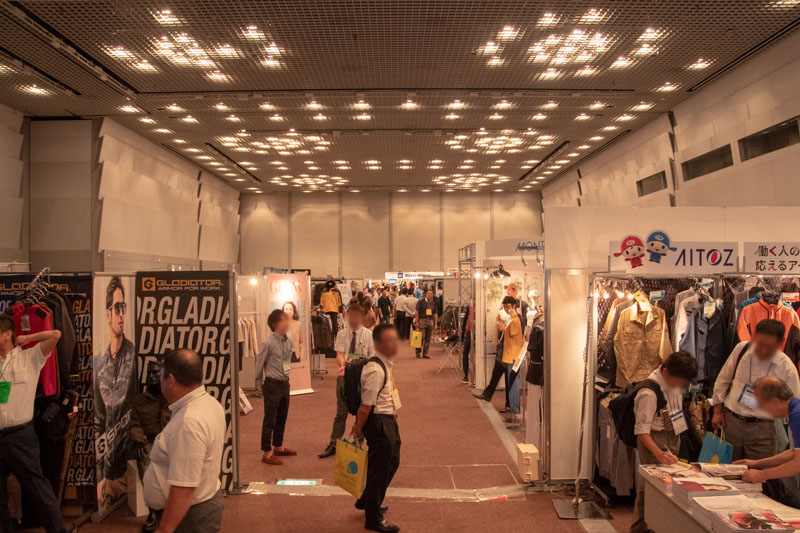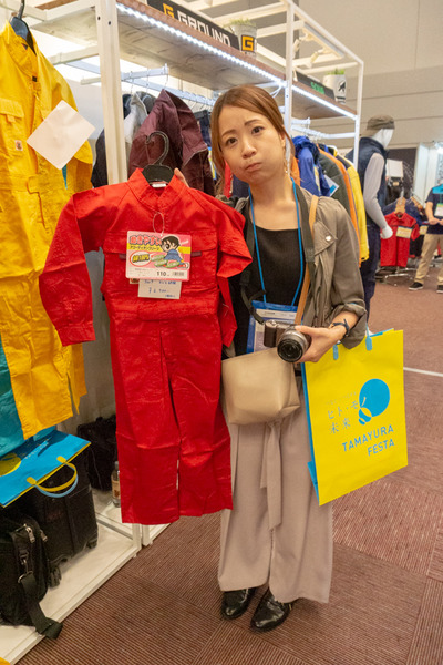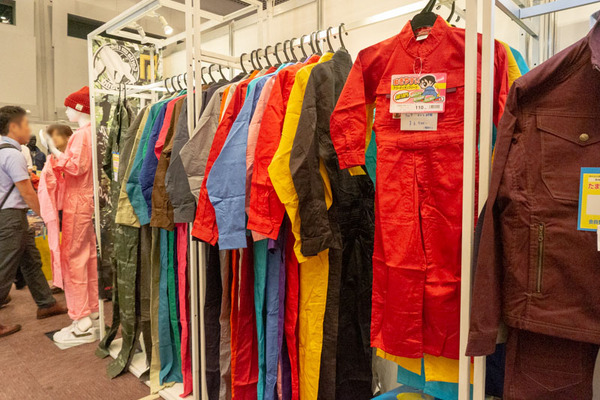 こちらのブースのつなぎは、サイズだけでなく色展開も豊富で21色もカラーバリエーションがありました。