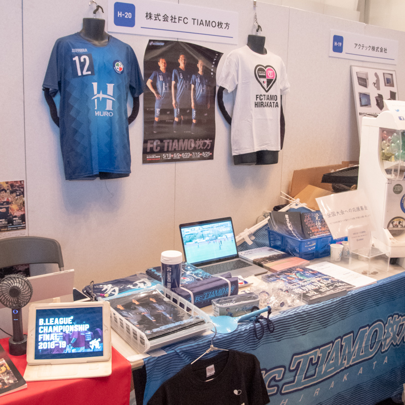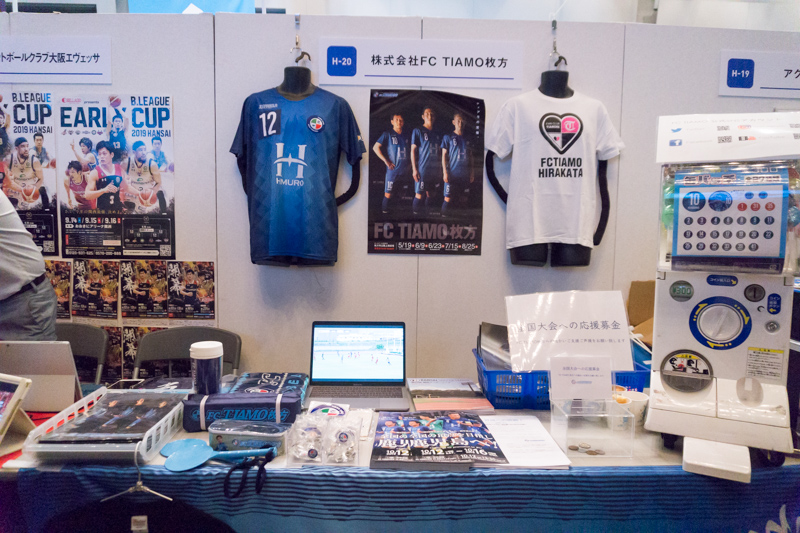 FCティアモ枚方さんのブースではサポーターグッズや、背番号バッチのガチャガチャが設置されていました。