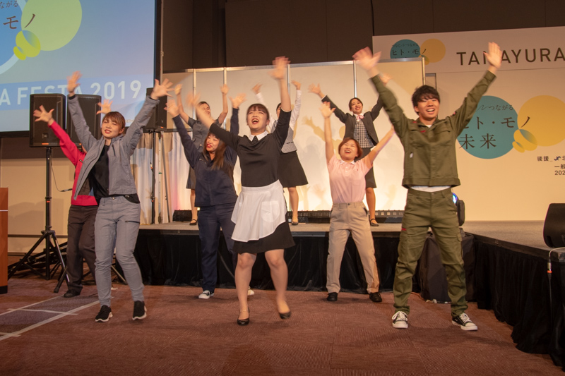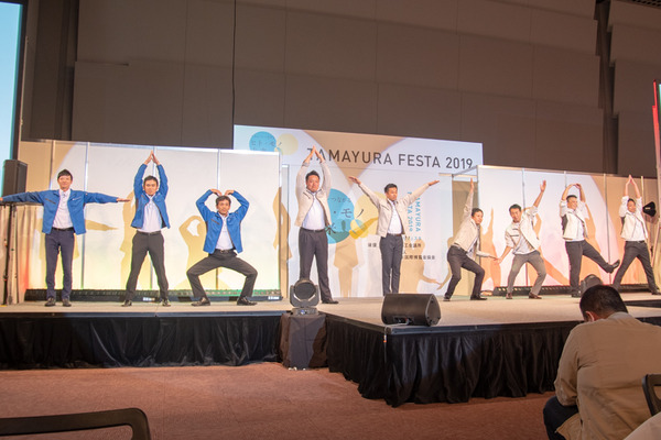 各支店ごとに個性豊かなパフォーマンスのあと、最後は全員でTAMAYURAの人文字![]()