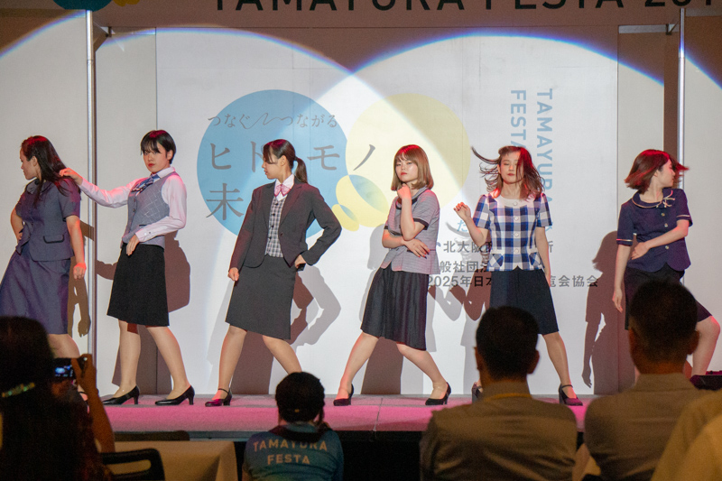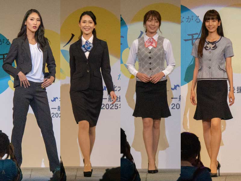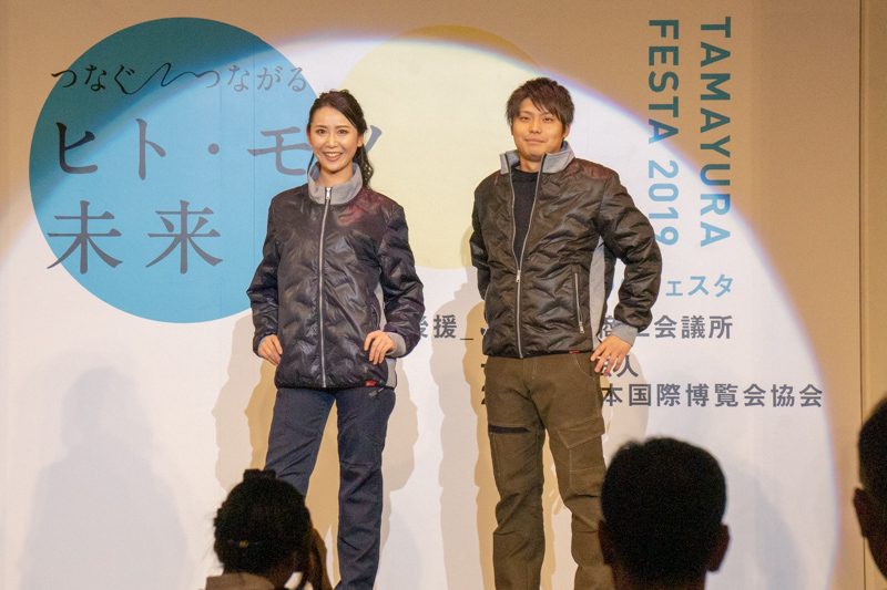 途中途中でダンスパフォーマンスもプラスされたショーで、仕事着の動きやすさが表現されています。