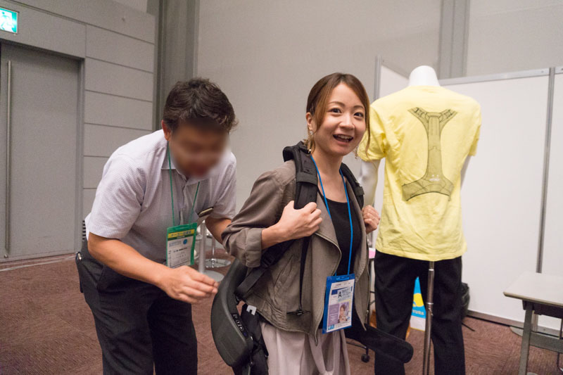 こちらでは「着るロボット」と呼ばれるパワードスーツ『ATOUN』の着用体験ができました。