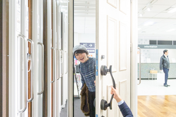 さっきの玄関ドアと同じように展示されてて、いろんな種類があるんですね〜。