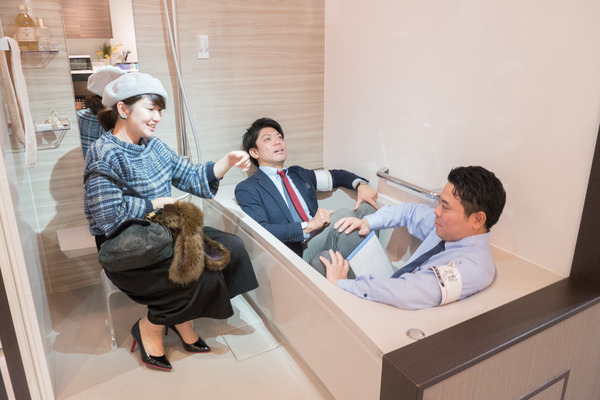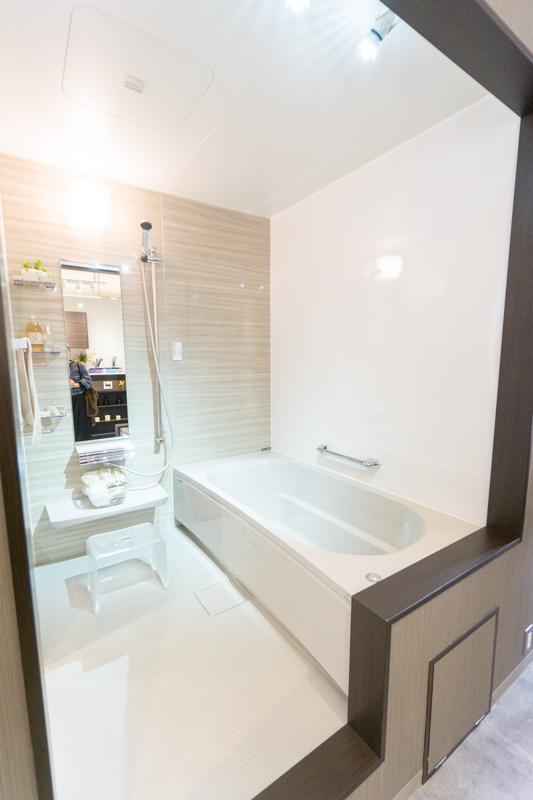 標準仕様では浴槽の形が3パターンあるので、中に入って体感して選んでいただきたいので大丈夫ですよ(笑)