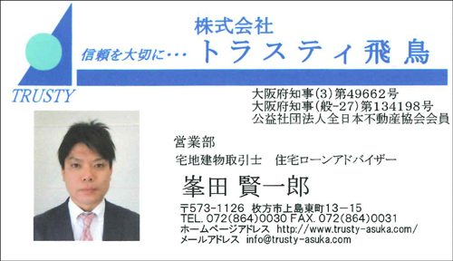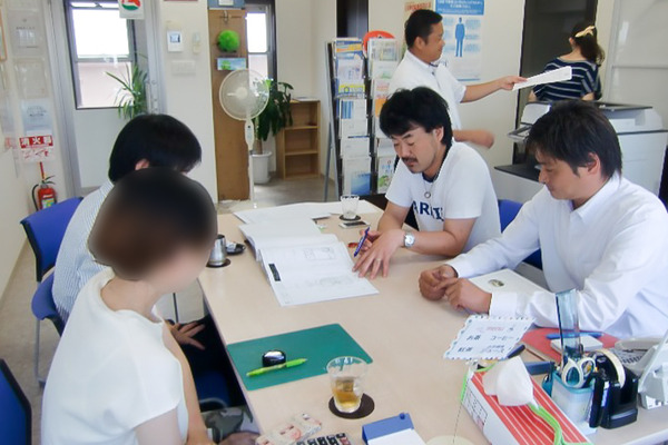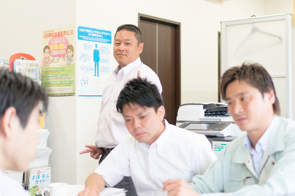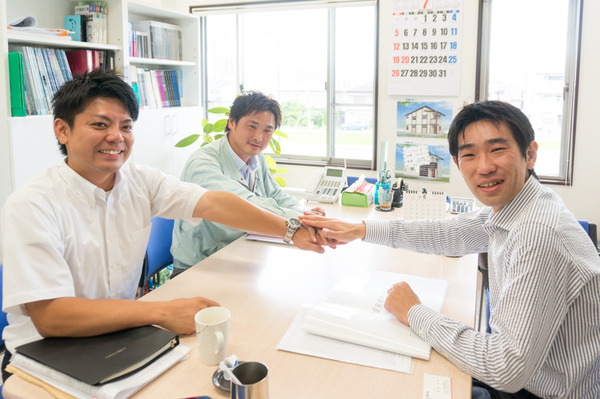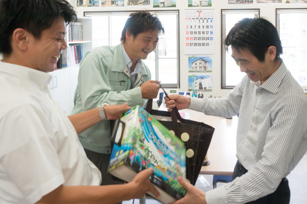 写真中央はトラスティ飛鳥のM様担当営業マンの峯田さん