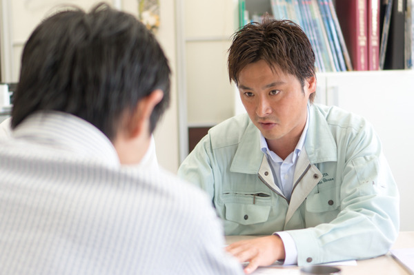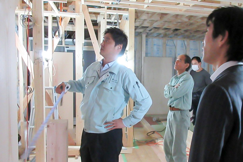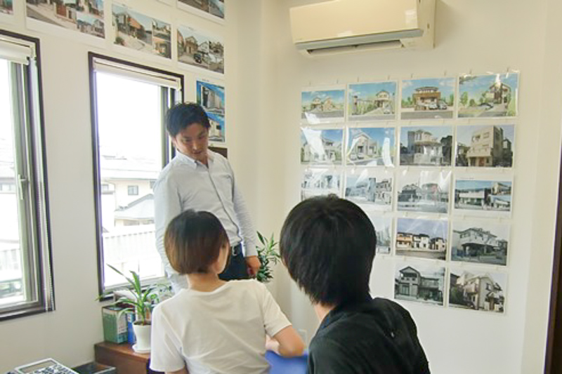 現場監督の藤岡さん(この日はスーツスタイル)がトラスティ飛鳥のこれまでの事例をもとにイメージを共有していきます。