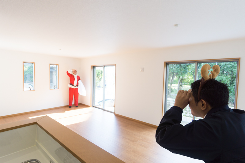 だから、その疑問を発端として、買主様の仲介手数料をゼロ円にする『ちょっと待った!! 新築仲介』ってサービスをはじめたんやって!ちょっとサンタの帽子、引っ張らんといてーや!課長になったのは関係ないって〜♪(ルンルン)