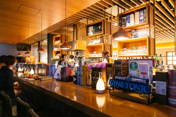 店内の席はカウンターとテーブル席、テラスにもテーブル席とカウンター席があります。