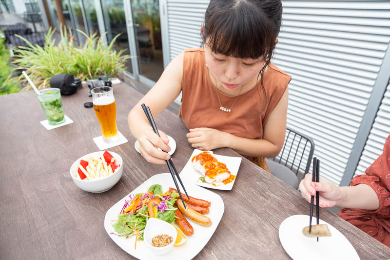 とりあえずテラスに座ろうや。とテラスのカウンター席に座った2人。