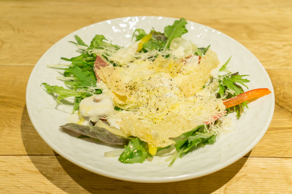 シーザードレッシングはブルーチーズと梅の花の豆乳を使ったもの