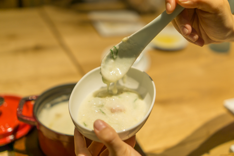 リゾットの味付けといえば濃厚なものを思い浮かべるかと思いますが、大豆が入っていてイタリアンのリゾットよりはさっぱりめの味付けになっています。ただ単なるさっぱりではなく、ベーコンがアクセントになっていて、締めに食べるのにぴったりでした!