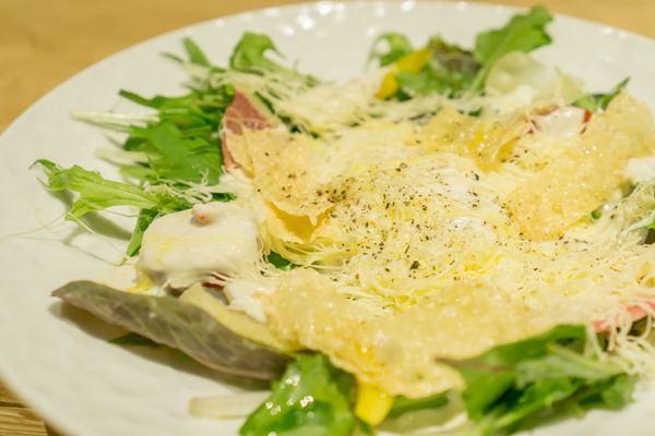 糸状のチーズの食感が面白い!そして半熟卵が絶妙にからんでくる…。ちまたのシーザーサラダはドレッシングの味が勝ちすぎてる時があるけど、ここは野菜の味をしっかり楽しめるわ…!