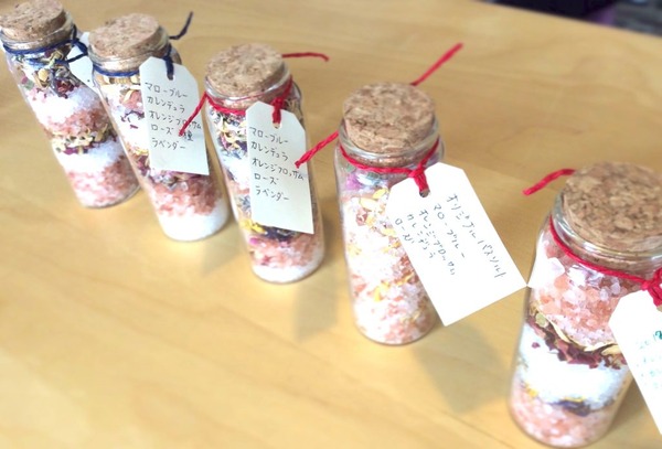 ・参加費:アロマスプレー500円とバスソルト500円の2種。1時間で2種類とも制作可能。