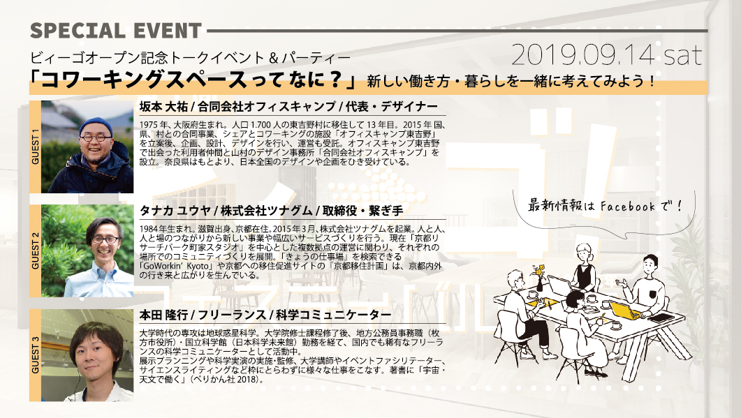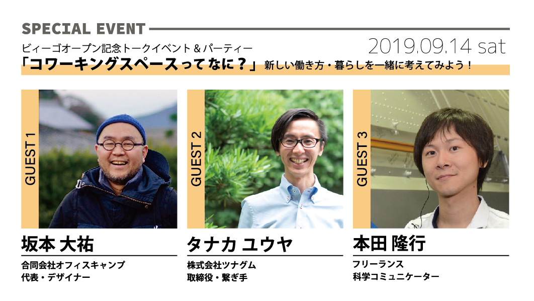 さらに、特別ゲストによるビィーゴオープン記念トークイベントを9月14日(土)に開催します。