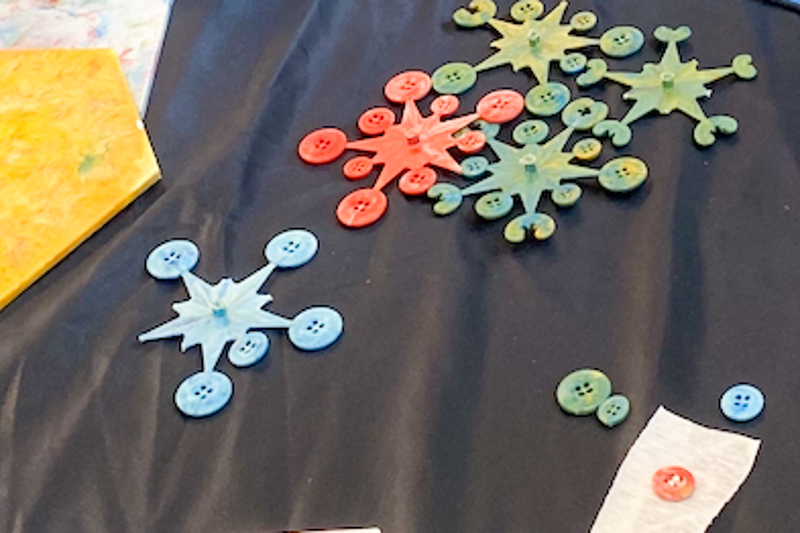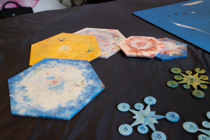 こちらはツリーの素材となる、ペットボトルやカプセルトイを可愛くデコレーションするワークショップ。