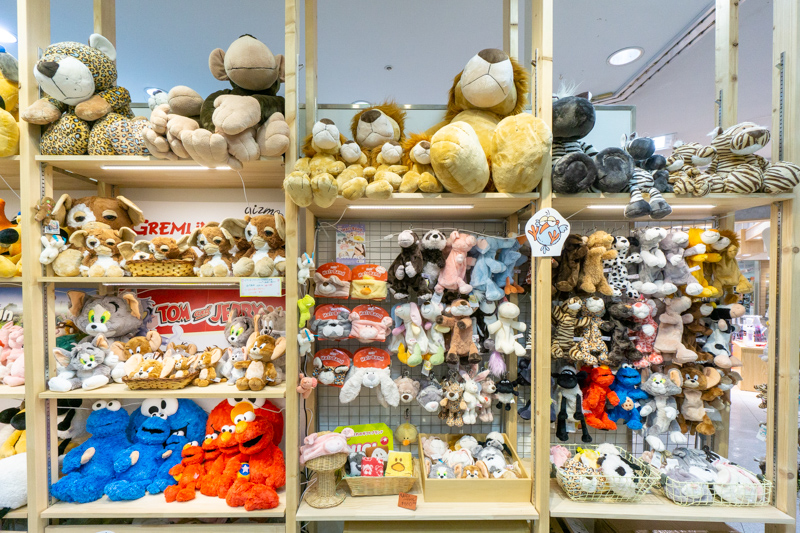 大きいサイズのぬいぐるみから、人気のフィギュアポーチにヘアバンドなど各キャラクターによって様々な種類の商品が並んでいます。