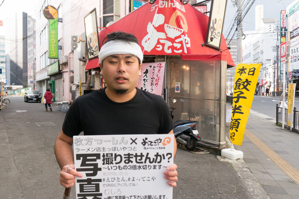 と、結局ラーメン店の店員のコスプレをして枚方市駅までやってきたすどん。