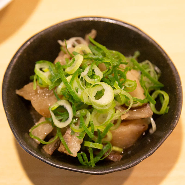 アンドウさん手作りのピリ辛ネギダレ 阿波尾鶏のタタキ ¥350(税別)