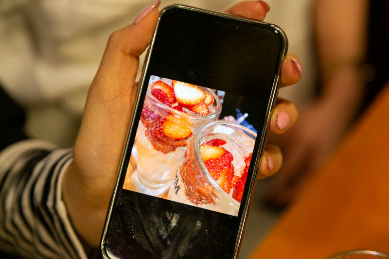 スマホでイチゴのチューハイをめっちゃオシャレに撮影してました!