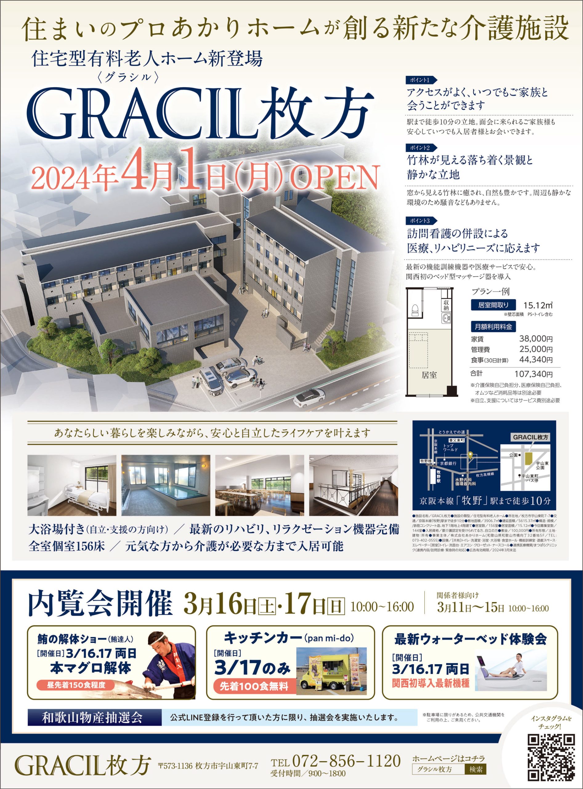 さらにグラシル枚方では訪問看護も併設しているので、最新の医療サービスを受けることができます。