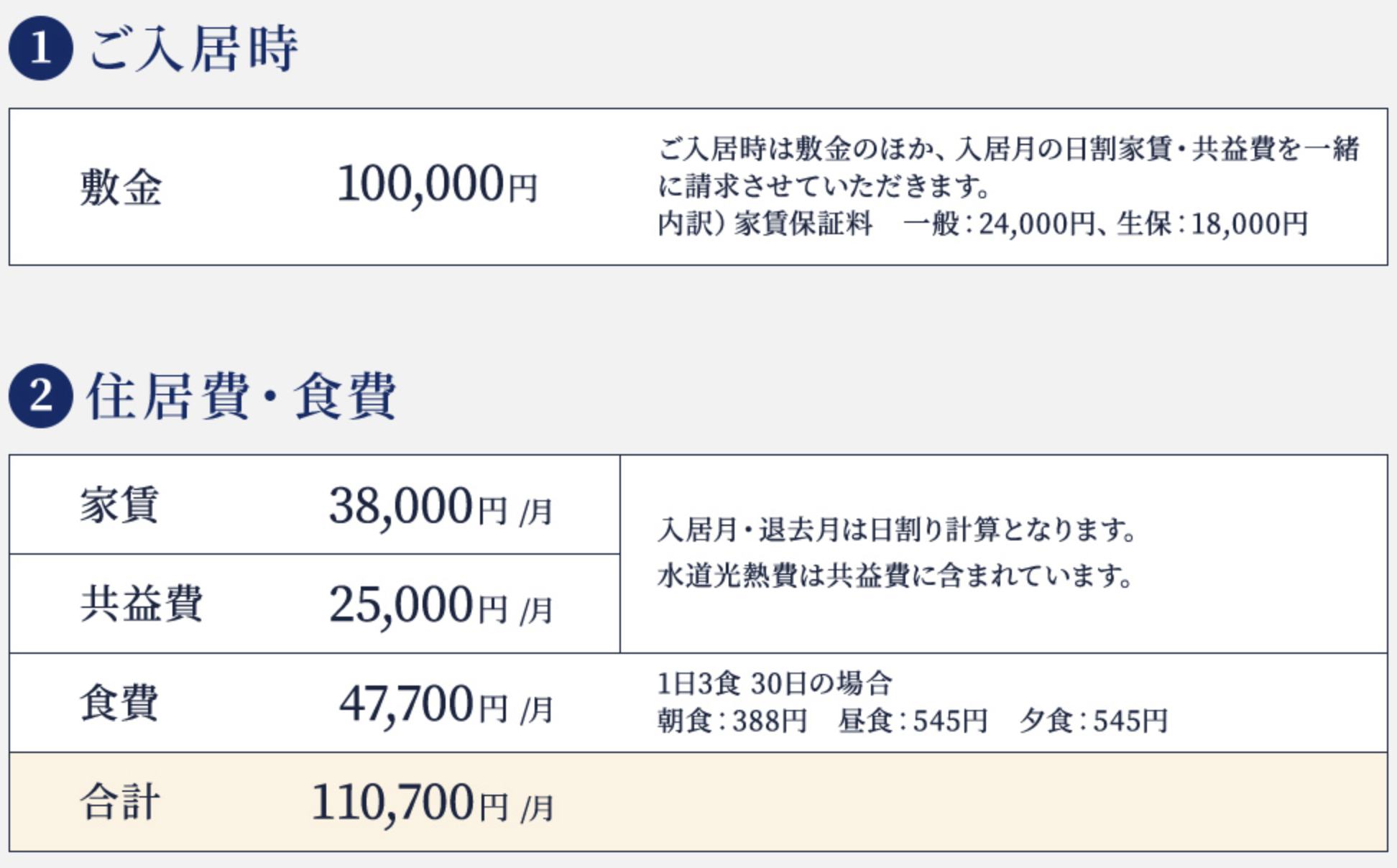 家賃・共益費・食費込みで、