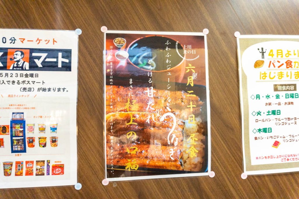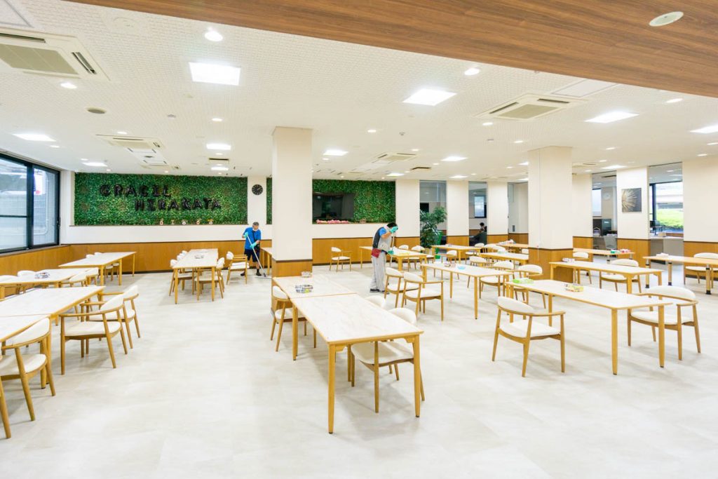 食事中に喉をつまらせることもあるかと思いますので、皆さんがお食事をされる際には常に食堂に看護師がいる体制にしています。