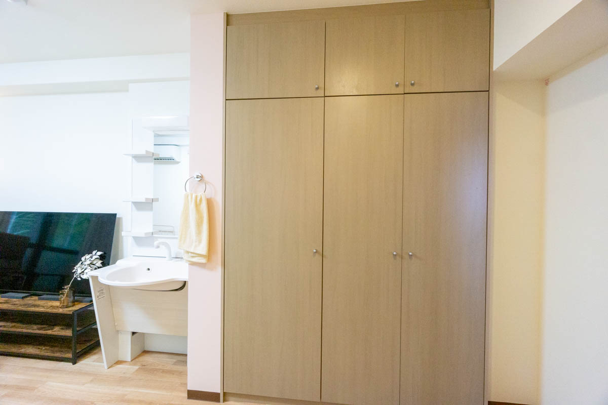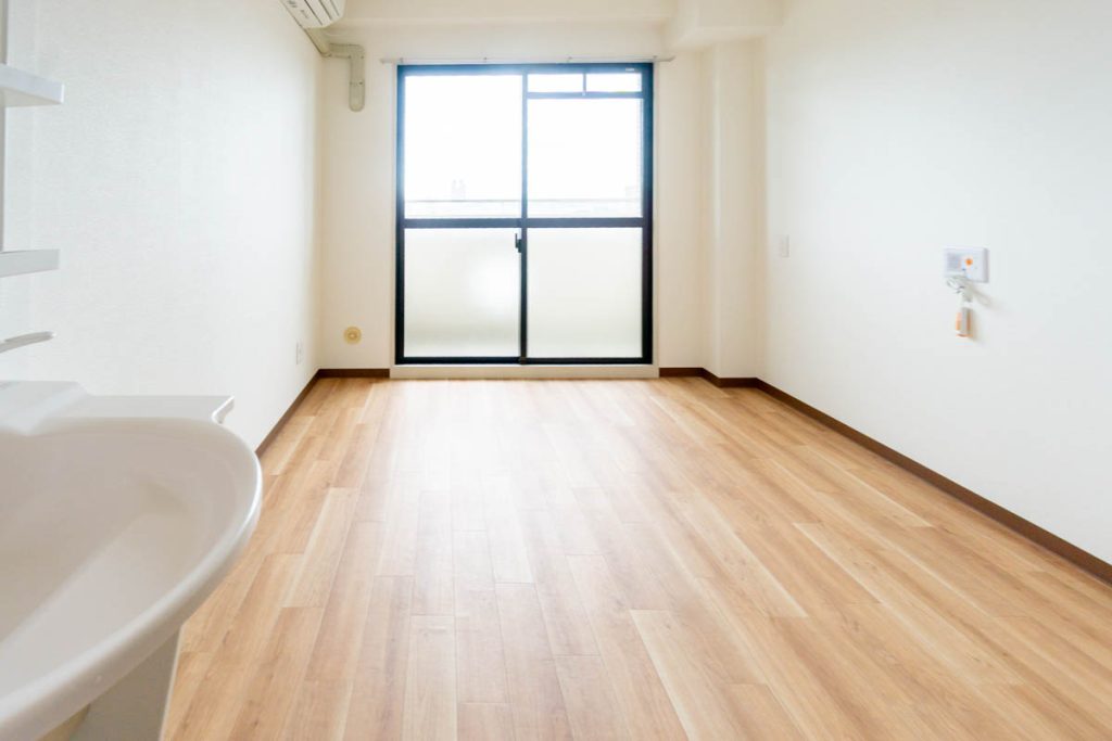 さきほどのモデルルームと同じ間取りで、トイレや洗面・収納も備え付け、家具を置く前はこんな感じです。