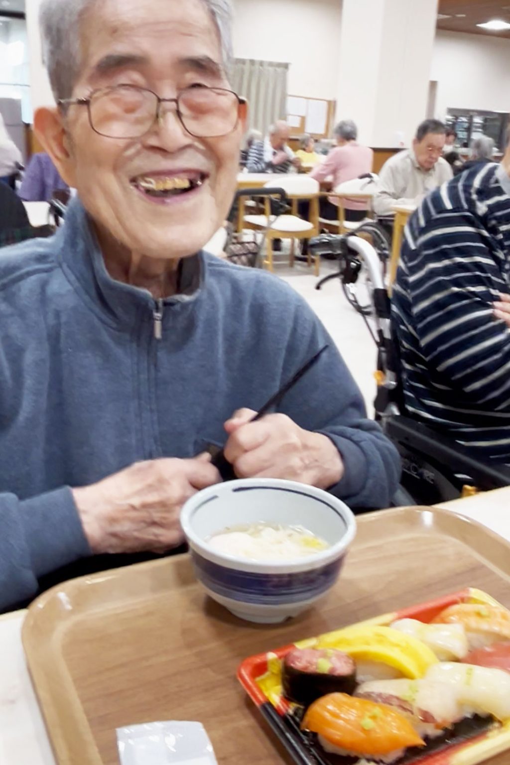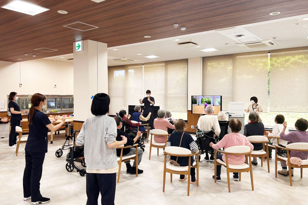 お部屋から食堂に移動するだけでもいい運動になりますし、週に1回はこうして集まってみんなでワイワイすることで心も体も元気になっていただけたらなと思っています!