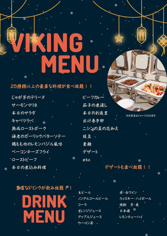 ビールやハイボールが飲み放題、25種類以上の美味しいお料理も!