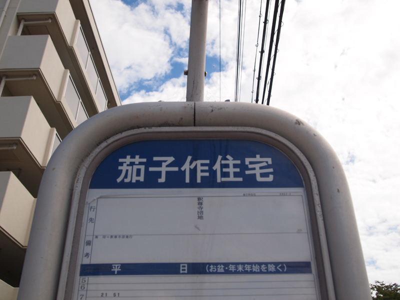 なんとこの「プラリア枚方茄子作」、すぐ目の前がバス停留所です