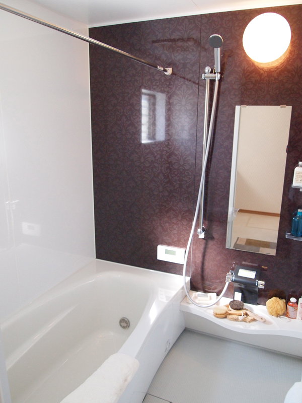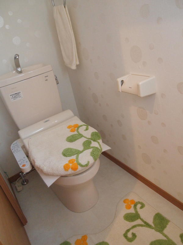 玄関あがってすぐ左にトイレがあります。バラの壁紙がかわいかったです。