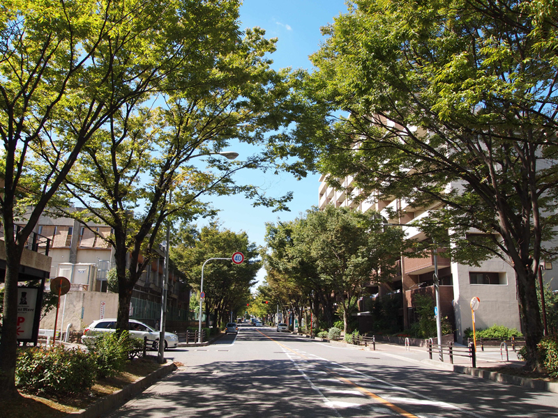 「茄子作口」の方へ出ると、すぐそこは香里ヶ丘です。香里ヶ丘と言えば枚方八景にも制定されている香里団地の並木が有名です。先日紹介したひらつーの看板の背景モデルにもなっています。