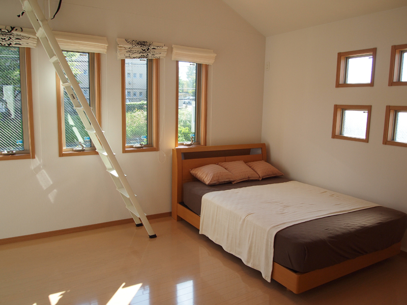 9.5帖の洋室。光がたくさん入る工夫がされています。かなり日当たりが良いので、太陽光の発電量もすごいことになるんじゃないでしょうか