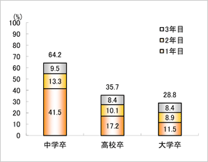 社会に出るのが早ければ早いほど3年後の離職率は高いという結果です。