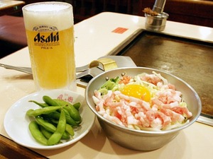 焼物1品(地鳥の塩焼き、マヨネーズ焼き、キムチ焼き、カラアゲの中から選んで下さい)、生ビールorドリンク