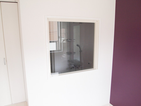 お風呂場から先ほどの4.6帖の洋室が見える室内窓がついているんです。「なんで?」と思われるかもしれないんですが、この窓があることでお風呂場特有の圧迫感をあまり感じなくなるのでより充実したバスタイムを過ごせるんです