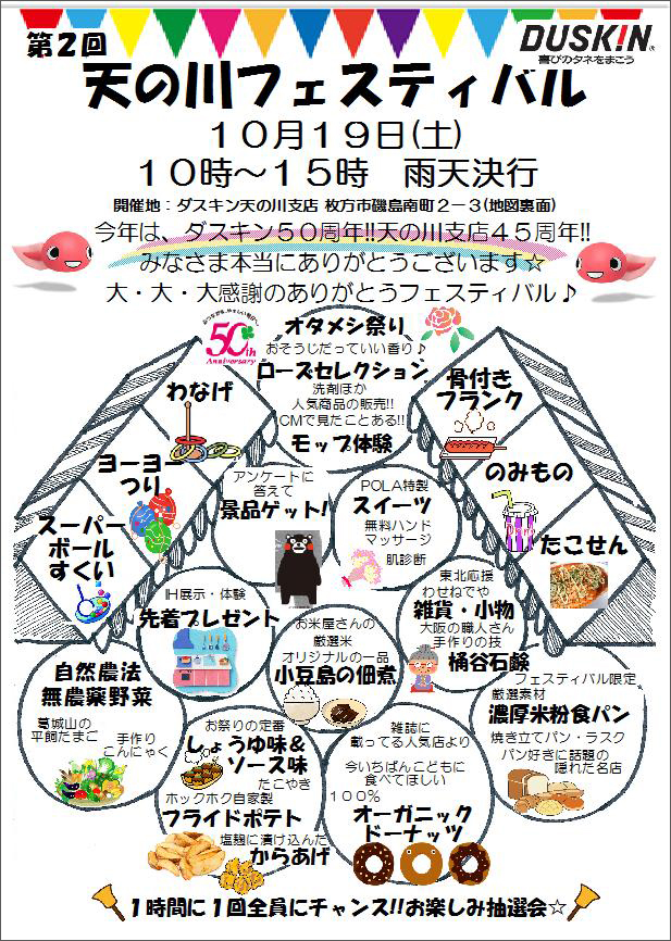 10/19(土)「第2回 天の川フェスティバル」開催!ダスキン天の川支店が贈る年に一度の感謝還元祭”。行けばプレゼントいっぱいもらえます【ひらつー広告】”