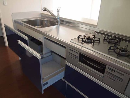 キッチンは収納たっぷり、おまけに3口ガスコンロで料理の幅が広がります。