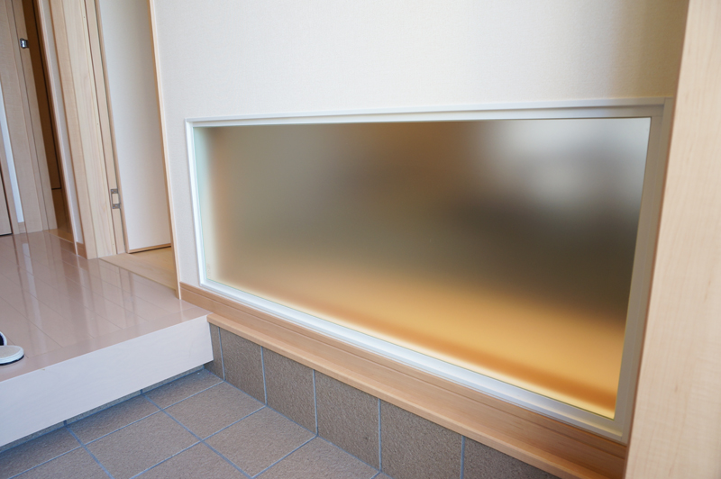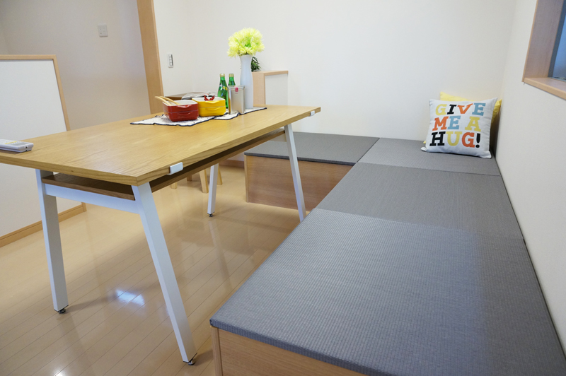 吊り押入れで下に空間を作ることで光が入ってきて明るくなりますね。この和室は玄関から直行OK。