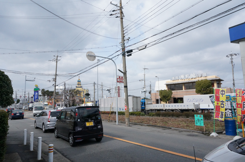 国道1号線には、吉野家に、和食さと、モスバーガーにマクド、ステーキのどんなど、飲食店がずらり。